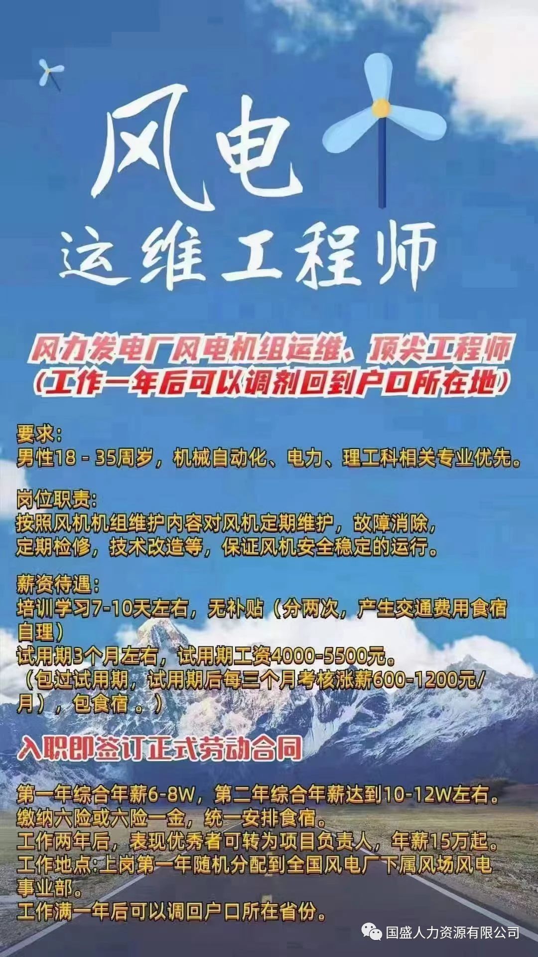 9、全国招聘培养风电运维工程师要求: