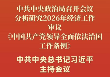 新华社北京12月8日电 中共中央政治局12月8日召开会议,分析研究2026年经济工作,审议《中国共产党领导全面依法治国工作条例》。中共中央总书记习近平主持会议。